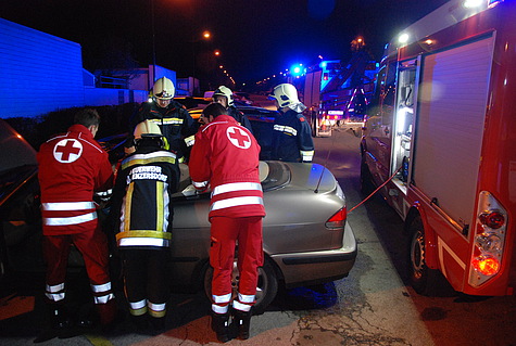 Person zwischen Rückbank und Fahrersitz eingeklemmt