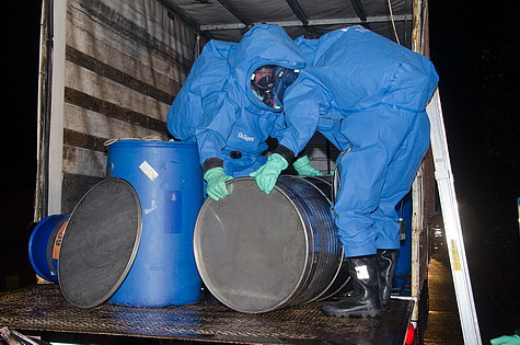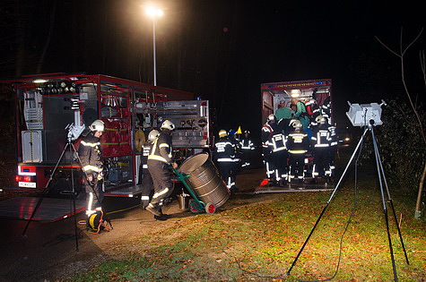 Auch unterstützte die Bezirksalarmzentrale den örtlichen Einsatzleiter und übermittelte Datenblätter zu den im LKW gefundenen Fässern via Funk und Email direkt an die Einsatzstelle.