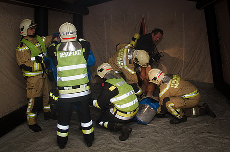 Bis zum Eintreffen des Schadstoffzuges konnten bereits alle drei Personen aus dem Gefahrenbereich gerettet und einer Not- Dekontamination zugeführt werden. Die Verletzten wurden im Anschluss durch den Arbeiter Samariter Bund, welcher mit zwei Fahrzeugen und vier Mann an der Übung teilnahm, erstversorgt.