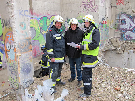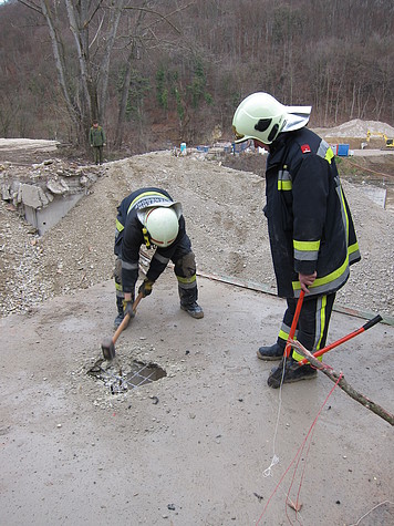 Die Abbruchobjekte boten aufgrund der vorhandenen Stahlbetonteile eine Vielzahl und vor allem äußerst realitätsnahe Übungsbedingungen. Unter dem Kommando von Sprenggruppenkommandant OBI Ing. Franz Sittner und SprenggruppenkommandantStv. EOBI Erwin Brunner konnten die 10 Sprengbefugten und 3 Sprenggehilfen an drei Stahlbetondecken Durchbrüche sprengen. Dabei hatten die teilnehmenden Sprengbefugten genügend Gelegenheit den Einsatz von Sprengstoff mit äußerstem Fingerspitzengefühl zu trainieren. Es wurden alle Durchbrüche mit Hilfe der Rette- und Bergesprengtechnik geschaffen, ohne allfällig dahinter befindliche Personen zu gefährden. Die Durchbrüche sind als Rettungszugänge im Falle eingeschlossener Personen zu verstehen. Diese Technik kann bei Einsätzen zum Tragen kommen, bei denen durch keine anderen Verfahren Zugänge geschaffen werden können, oder dies nicht in einem angemessenen Zeitraum möglich ist! Unter den Übungsbeobachtern befanden sich der Bürgermeister der Marktgemeinde Kaltenleutgeben Ing. Josef Graf, der Kommandant Sprengdienst des NÖLFV HBI Roland Kormesser und der Kdt. der 14 KHD-Bereitschaft HBI Kurt Raitmar. Gelungene Präzisionsarbeit: Für die Sprengdienstgruppe 14 bot sich mit der Sprengübung die Gelegenheit, praktisch an einem Objekt zu üben, um für ähnliche Einsätze im Katastrophenfall bereit zu sein. Sollten Bauteile durch Sturm, Einsturz oder Erdbeben Personen gefährden, stehen die Sprengbefugten mit ihrem Know-how bereit um Eingeschlossene durch gezielte Sprengtechnik zu befreien.Bildautor: Sprenggruppe 14