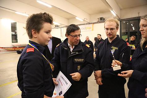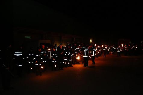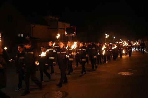 Am besten gelang dies der Jugendgruppe aus Hennersdorf, dicht gefolgt von der Feuerwehrjugendgruppe aus Gumpoldskirchen und Perchtoldsdorf. Im Anschluss an dem Vergleichsbewerb maschierten alle Teilnehmer, sowie die Ehrengäste, die sich den Besuch der Veranstaltung nicht nehmen ließen, in einem beeindruckenden Fackelzug zum Feuerwehrhaus Guntramsdorf. Dort fand schließlich die Siegerehrung statt. Als Ehrengäste waren dabei anwesend: Vizebürgermeister Robert Weber, Bezirksfeuerwehrkommandant LRR Ing. Richard Feischl, Bezirksfeuerwehrkommandant-Stellvertreter BR Christian Giwiser, ELFR Franz Koternetz und EBR Karl Blieberger. Anschließend wurden alle Teilnehmer von der Feuerwehr Guntramsdorf mittels Schnitzelsemmeln verpflegt und die Veranstaltung fand einen gemütlichen Ausklang. Ein großes Dankeschön gebührt an dieser Stelle der Marktgemeinde Guntramsdorf für die kostenlose Überlassung der Sporthalle, sowie dem Unterabschnittskommandanten, Hauptbrandinspektor Ludwig Marx, dem Ausbildungsleiter, Brandmeister Michael Schinko und Vizebürgermeister Robert Weber für die Pokalspenden.Bildautor: Thomas Zazel/FF Guntramsdorf