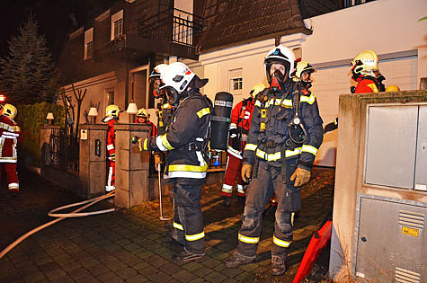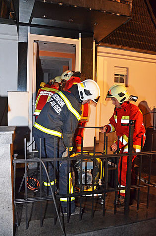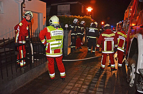 In einem Einfamilienhaus, in der Hochleitengasse, geriet eine Küchenzeile in Brand. Einsatzleiter BI Herbert Rittler erkundete die Lage und schickte einen Atemschutztrupp ins Untergeschoss des Objekts vor.