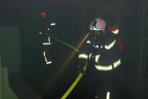 Da sich im Keller Großstromgeneratoren und Aggregate befinden, musste zuerst sichergestellt werden, dass sämtliche Stromleitungen abgeschalten sind, ehe der Atemschutztrupp mit der Brandbekämpfung beginnen konnte.