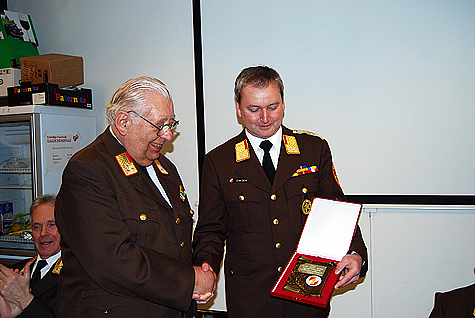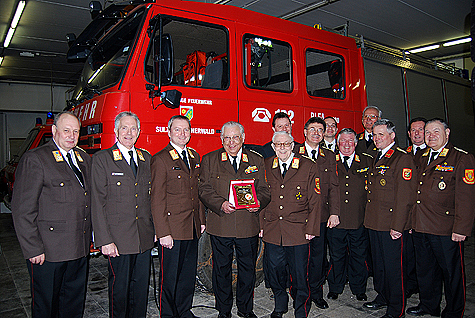 Am 1. Juni 1953 trat Florian Breis der Feuerwehr Breitenfurt bei, nach seiner Hochzeit übersiedelte er und wechselte zur Feuerwehr Sulz. Im Jahr 1981 wurde er zum Kommandant der Feuerwehr Sulz gewählt, und bekleidete in weitere Folge einige Positionen im Abschnitts- bzw. Bezirksfeuerwehrkommando - u.a. als Kommandant der 14. FuB Bereitschaft, als Bezirkssachbearbeiter für Ausbildung und als Mitglied im Technischen Ausschuß. 1986 wurde Florian Breis Bezirksfeuerwehrkommandant Stellvertreter und ab dem Jahr 1994 hatte er die Position des Bezirksfeuerwehrkommandanten über. Aus Sicht der Einsatzorganisation und Koordination war für ihn die Hochwasserkatastrophe 1994 im Bezirk Mödling einer der größten Einsätze; für ihn prägend war der Flugzeugabsturz in Grub. Das Thema "Ausbildung" stand bei Florian Breis ständig im Vordergrund. Es war ihm ein großes Anliegen, dass bereits die Feuerwehrjugend eine fundierte Ausbildung erhält. Das Schlagwort der "Improvisation" in Verbindung mit geringen und eigenen Feuerwehrmitteln Einsätze zu bewältigen hatte für ihn hohen Stellenwert. In seiner Amtszeit als Feuerwehrkommandant war er für den Bau von zwei Feuerwehrhäusern in Sulz verantwortlich. Im Jahr 1999 legte er aus Altersgründen dieses Amt zurück. Florian Breis ist auch heute noch bei größeren Einsätzen und besetzt die Zentrale der Feuerwehr Sulz. Bei den wöchentlichen Treffen im Feuerwehrhaus ist er auch regelmäßig anzutreffen. Auch sein Interesse an den aktuellen Verläufen des Feuerwehrwesens ist immer noch sehr groß. Florian Breis berichtet, dass er sich sehr über die Wertschätzung aller Feuerwehrkameraden im Bezirk Mödling, auch nach seiner Funktionszeit als Bezirksfeuerwehrkommandant, freut - er ist auch heute noch ein regelmäßig eingeladener und gerngesehener Gast bei vielen Veranstaltungen. Dies beweist auch die Tatsache, dass zu seinem 80. Geburtstag Vizebürgermeister Ing. Mirko Bernhard, Alt-Bezirksfeuerwehrkommandanten ELR wHR Dr. Karl Steininger und ELFR Franz Koternetz und Stellvertretend für alle aktiven Mitglieder Bezirksfeuerwehrkommandant-Stv. BR Christian Giwiser anwesend waren. Florian Breis bekam vom Bezirksfeuerwehrkommando eine Bronzene Plakette überreicht. Der Jubilar erhielt weiters Stellvertretend von V Michael Pieler eine Uhr mit einem Abbild des Heiligen Florian und des Korpszeichens. Weiters wurde an diesem feierlichen Tag noch ein zweiter Geburtstag gefeiert. EOBM Franz Schwaiger wurde ebenso 80 Jahre alt und erhielt Stellvertretend von OBR (LFK) Fritz Strutzenberger ebenfalls eine Feuerwehruhr aus Holz.Bildautor: Michael Wagner/Pressestelle BFK Mödling