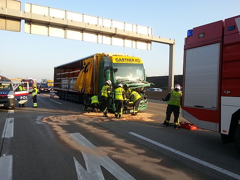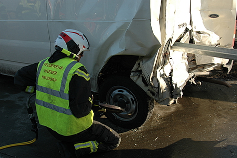 In diesen Unfall waren zwei PKW, ein Kleinbus und ein LKW verwickelt. Die Einsatzkräfte der Feuerwehr Wiener Neudorf wurden daher aufgeteilt, wobei GTLF und ASP Wiener Neudorf Richtung Wien fuhren, Voraus und SRF Wiener Neudorf Richtung Graz blieben.