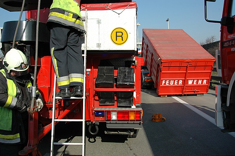 Mittels Hebevorrichtung LKW konnte der Wagen durch das Kranfahrzeug von der Autobahn gebracht werden. Beim zweiten Schwerfahrzeug mussten die Einsatzkräfte der Freiwilligen Feuerwehr Wiener Neudorf den Unterfahrschutz von der dritten Achse mittels Seilwinde des SRF hervorziehen. Danach konnte der LKW die Fahrt selbst fortsetzen.