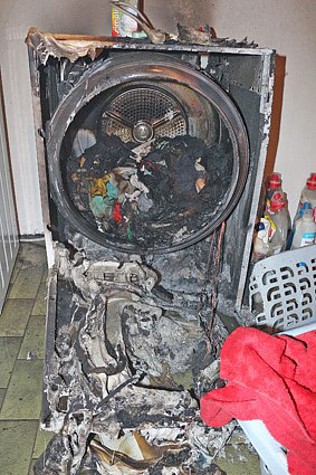 In einem Kellerraum fanden die Feuerwehrmänner einen brennenden Wäschetrockner vor und begannen diesen zu löschen.