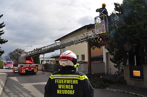 Seit 5:42 Uhr standen 24 Feuerwehren des Bezirkes Mödling am Sonnatag, 16. März 2014 im Einsatz. Zum ersten Sturmschaden des Tages wurde die Freiwillige Feuerwehr Wiener Neudorf alarmiert.