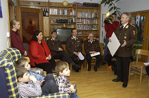 Die 25 Freiwilligen Feuerwehren und fünf Betriebsteuerwehren des Bezirkes Mödling haben gemeinsam 7222 Euro aufgebracht. Aus dieser Spendensumme wurden Weihnachtsgeschenke für die gesamte Kinderdorffamilie des Hauses St. Florian beschafft. Aus dem beträchtlichen Restbetrag kann die Kinderdorfmutter im Jahr 2005 weitere Anschaffungen abdecken. Die Übergabe der Geschenke und des Spendenschecks durch Bezirksfeuerwehrkommandant OBR Franz Koternetz erfolgte am 14. Dezember 2004. An der Feier nahm neben zahlreichen Repräsentanten von Feuerwehren des Bezirkes Mödling auch Landesfeuerwehrkommandant LBD Wilfried Weissgärber teil.