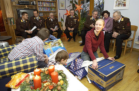 Eine ganz andere Form der Hilfe leisten die Feuerwehren zu Weihnachten: Vor Jahrzehnten hat der Landesfeuerwehrverband Niederösterreich die Patenschaft über das "Haus St. Florian" im SOS-Kinderdorf Hinterbrühl übernommen. Jedes Jahr spielt einer der 21 Bezirke Niederösterreichs für die Bewohner dieses Hauses Christkindl. Heuer war der Heimatbezirk des SOS-Kinderdorfs Hinterbühl an der Reihe.