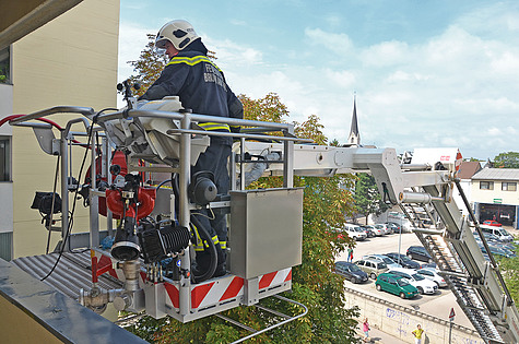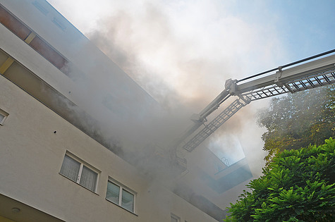 Der Einsatzleiter ordnete daher an, parallel über die Teleskopmastbühne einen Aussenangriff und mit einem Rohr über das Stiegenhaus einen Innenangriff zu starten.