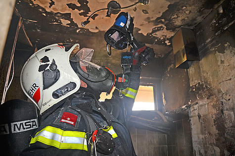 Nachdem der Brand erfolgreich bekämpft war, wurde durch eine Wärmbildkamera der betroffene Bereich kontrolliert.