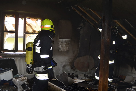 Auch bei den Nachlösch- und Ausräumarbeiten im Gebäude wurde die Feuerwehr Leopoldsdorf durch Atemschutzträger aus dem Bezirk Mödling unterstützt.