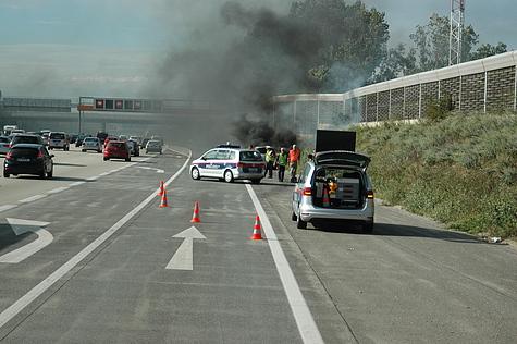 Auf der Südautobahn A2 in Fahrtrichtung Wien kam es am Beschleunigungstreifen bei der Auffahrt Wiener Neudorf am 18. August 2014 zu einem Fahrzeugbrand.