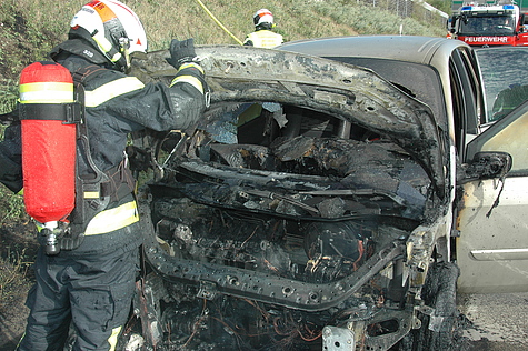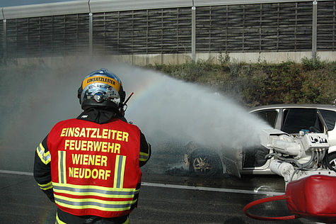 Die Bezirksalarmzentrale alarmierte um 16:40 Uhr die Freiwillige Feuerwehr Wiener Neudorf zum Brandeinsatz. Bereits beim Ausrücken konnte die Rauchsäule wahrgenommen werden. Vor Ort stand das Auto im Motorbereich in Vollbrand. Auch der angrenzende Lärmschutzwall war teilweise in Brand geraten. Unter Atemschutz und Vornahme eines C-Rohres vom HLF Wiener Neudorf konnte der Brand schnell unter Kontrolle gebracht werden. Zusätzlich wurde über den Frontwerfer vom GTLF Wiener Neudorf die Wiese abgelöscht. Aufgrund des dichten Brandrauches kam es kurzfristig zu Sichtbehinderungen auf der Autobahn. Das ausgebrannte Fahrzeug wurde mit dem ASP Wiener Neudorf von der Autobahn verbracht und gesichert abgestellt. Nach rund 45 Minuten konnten die 17 Mitglieder mit deren vier Fahrzeugen wieder ins Feuerwehrhaus einrücken.Bildautor: FF Wiener Neudorf & Herbert Wimmer/Pressestelle BFK Mödling