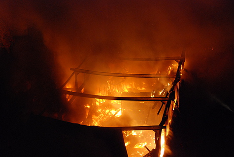 Nach fast vier Stunden Löscheinsatz konnten die ersten Feuerwehrkräfte ihr Material zurückziehen. Dabei musste festgestellt werden, dass viele Schläuche beim Löscheinsatz kaputt gingen.