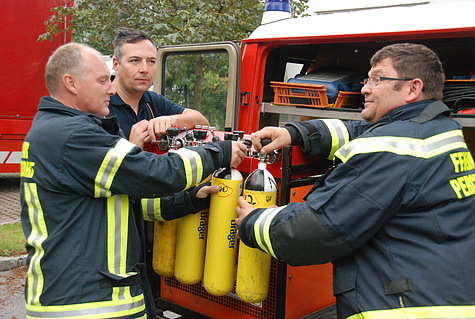 Um die eingesetzten Atemschutztrupps nochmals zur Brandbekämpfung hinzuziehen zu können, wurde die Feuerwehr Perchtoldsdorf mit der mobilen Atemluftfüllanlage alarmiert, da sich das Tauchfahrzeug bei den Wasserdienstleistungsbewerben befindet.