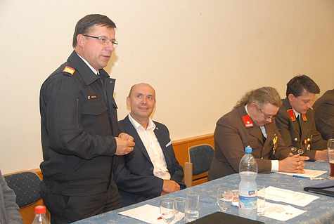 Neben dem Bürgermeister der Gemeinde Wienerwald Michael Krischke und Vizebürgermeister Ing. Mirko Bernhard fanden sich auch LFR Ing. Richard Feischl, ABI Thomas Kaltenecker und HBI Robert Heindl im Feuerwehrhaus Grub ein. Kommandant-Stellvertreter BI Markus Niederberger übernahm die Einladung und übergab anschließend das Wort an Bgm. Michael Krischke.