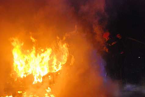 Beim Eintreffen der Einsatzkräfte wurde sofort das Front-C-Rohr des Hilfeleistungsfahrzeuges unter Atemschutz in Betrieb genommen und mit den Löscharbeiten begonnen.