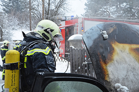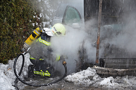 Mit einer Hochdruckleitung und unter Atemschutz wurde der Vollbrand des Motorraumes abgelöscht. Der Besitzer wurde durch das Rote Kreuz zur weiteren Versorgung ins Krankenhaus gebracht.