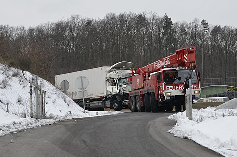 Dazu wurde durch die fünfköpfige Kranmannschaft die Kardanwelle gelöst, das Bremssystem des Unfallfahrzeuges mit Druckluft versorgt sowie eine Abschleppvorrichtung am LKW montiert. Besonders die Versorgung der defekten Druckluftbremsanlage gestaltete sich dabei äußerst kompliziert und zeitaufwendig.