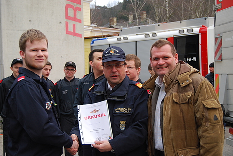 Die Siegerehrung wurde von Bezirksfeuerwehrkommandant LFR Ing. Richard Feischl und zahlreichen Feuerwehrfunktionären des Bezirkes durchgeführt. Als Ehrengäste gratulierten den Jugendlichen der Vizebürgermeister von Kaltenleutgeben Hannes Stiehl.