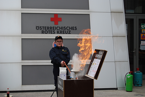 Auch Pausenfüllendes Rahmenprogramm wurde angeboten, unter anderem eine Station mit Staub- sowie Fettexplosionen und Bedienung eines Feuerlöschers.