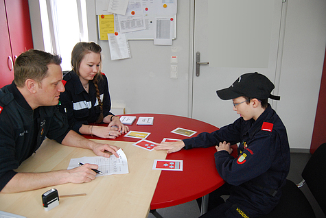 In allen drei Kategorien müssen die Jugendlichen Dienstgrade richtig bezeichnen können, einen schriftlichen Test ablegen, ihre Kenntnisse in Knotenkunde nachweisen und Geräte der Feuerwehrfahrzeuge erkennen - und in höheren Stufen auch erklären - können.