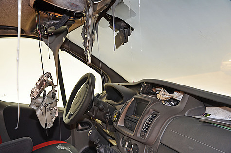 Am 13. April 2015 in den Vormittagsstunden fuhr ein männlicher Lenker mit seinem Renault Trafic auf der Sparbacher Straße. Plötzlich bemerkte er Brandgeruch und eine Rauchentwicklung in seinem Fahrzeug. Er lenkte geistesgegenwärtig sofort den PKW an den Fahrbahnrand und wollte sofort mit dem mitgeführten Handfeuerlöscher den Brand bekämpfen. Dazu kam er jedoch nicht mehr, da einige Sekunden später der Innenraum des Fahrzeuges in Flammen stand. Dem Lenker blieb nichts anderes mehr übrig als den Feuerwehr Notruf zu verständigen.