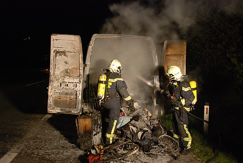 Ein ungarischer Fahrzeuglenker war gerade mit seinem Kastenwagen auf der A21 in Fahrtrichtung Wien unterwegs, als er plötzlich Rauch und Flammen bemerkte. Sofort lenkte er das Fahrzeug auf den Pannenstreifen und begab sich ins Freie.