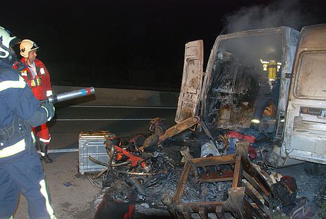 Trotz Flammenbildung gelang es dem Lenker, den Anhänger abzukuppeln und in Sicherheit zu bringen. Die Bezirksalarmzentrale alarmierte um 3:52 Uhr die Freiwilligen Feuerwehren Gießhübl und Brunn am Gebirge zum Fahrzeugbrand.