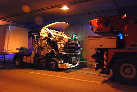Nachdem der Tunnel S1 komplett für den Verkehr gesperrt wurde, wurde das Kranfahrzeug Mödling nachalarmiert. Das Führerhaus wurde vom Sattelaufleger getrennt und in weiterer Folge mittels Abschleppstange aus dem Tunnel gezogen.