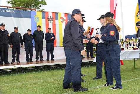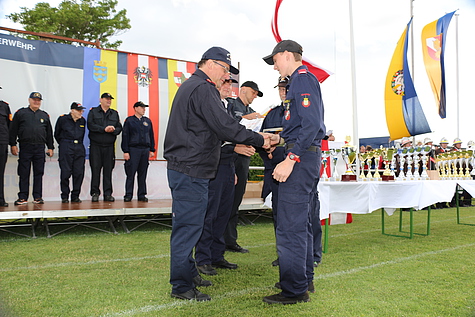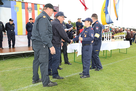 Um 17:30 Uhr fand bei sehr wechselhaftem Wetter der Abschluss der Bewerbe mit den Siegerehrungen für Feuerwehrjugend und Aktive statt. Ein herzlicher Dank gilt der Feuerwehr Münchendorf für die Ausrichtung der diesjährigen Bezirksbewerbe. Bürgermeister Josef Ehrenberger und Bezirksfeuerwehrkommandant Ing. LFR Richard Feischl lobten die hervorragenden Bewerbsleistungen und gratulierten allen Siegern.