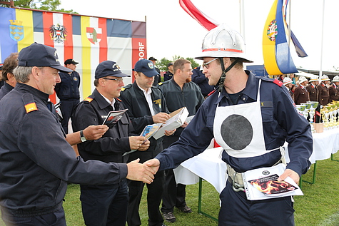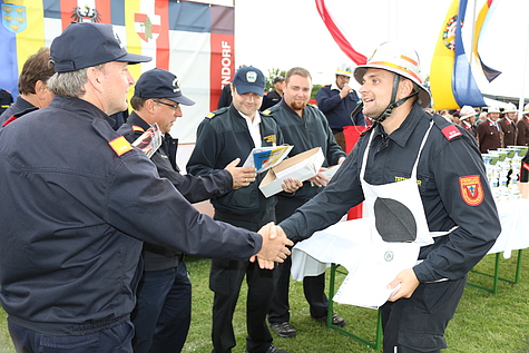 Zahlreiche Gäste, Feuerwehrkameraden und Funktionäre, allen voran Bezirksfeuerwehrkommandant LFR Ing. Richard Feischl und sein Stellvertreter BR Christian Giwiser, zeigten großes Interesse für die Leistungen der Feuerwehrjugend und freuten sich über den Einsatzwillen und die Begeisterung der Jugendlichen.