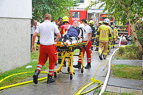 3 Notärzte und 4 Rettungstransportwagen vom Roten Kreuz standen für die geretteten Bewohner bereit.