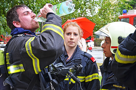 Durch die Atemschutztrupps der Feuerwehren Vösendorf, Biedermannsdorf und Hennersdorf begannen nach der Aufnahme der Brandursache durch die Polizei die körperlich sehr anstrengenden Ausräumarbeiten im Keller, weiterhin unter Atemschutz.Starker Regen erschwerte auch die Arbeit im Freien um die betreffende Wohnhausanlage.