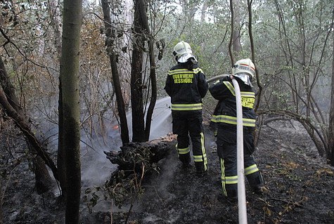 Kleinere Glutnester wurden mit Feuerpatschen ausgeschlagen bzw. mit Löschrucksäcken abgelöscht. Anfänglich stand die Verhinderung einer weiteren Ausbreitung im Fokus, um die betroffene Fläche möglichst klein zu halten. Dann wurden die Glutnester innerhalb sukzessive abgelöscht.