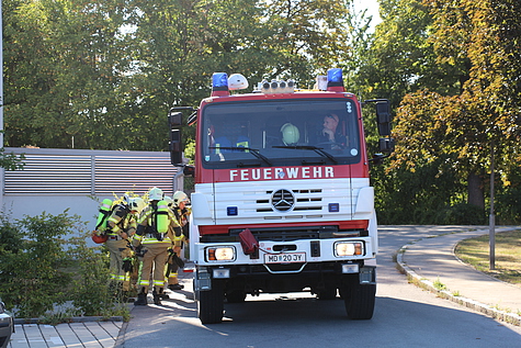 Geistesgegenwärtig, jedoch nicht ungefährlich, stürmte der Hausherr zur Wohnung und führte eigenständige Löschmaßnahmen durch. Außerdem erledigte er die vollständige Stromabschaltung und öffnete sämtliche Fenster im Stiegenhaus. Zwischenzeitlich wurde auch schon, über den Notruf 122, die Bezirksalarmzentrale informiert. Der diensthabende Disponent alarmierte daraufhin, um 17:36 Uhr, die Freiwillige Feuerwehr Vösendorf zum Brandeinsatz. Wenige Minuten später trafen bereits zwei vollbesetzte Löschfahrzeuge an der Einsatzadresse ein.