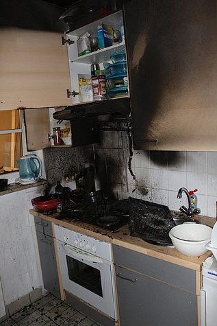 Eingewiesen durch beobachtende Passanten, konnte ein Atemschutztrupp rasch zur betroffenen Wohnung vordringen. Der Mieter hatte den Brand in der Küche bereits erfolgreich bekämpft und empfing, etwas erschöpft, die Einsatzkräfte an der Tür. Mittels Wärmebildkamera wurde der Küchenbereich kontrolliert und Nachlöscharbeiten über eine Kübelspritze durchgeführt. Das ebenfalls rasch eingetroffene Rettungsteam kümmerte sich in der Zwischenzeit bereits um den glücklicherweise, unverletzten Hausherrn. Es folgten weitere Messungen mit der Wärmebildkamera und geringfügige, notwendige Demontagen an der Kücheneinrichtung, um sämtliche Brandstellen ablöschen zu können.