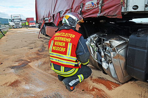Nach rund zwei Stunden konnten die Einsatzkräfte der Feuerwehr Wiener Neudorf die Autobahn verlassen und ins Feuerwehrhaus einrücken.