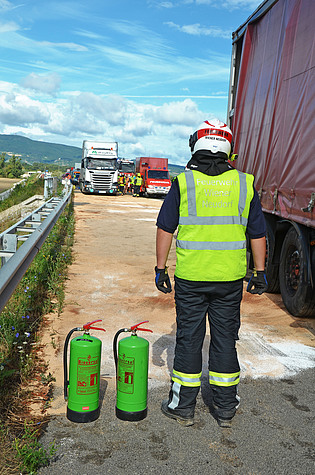 Bereits wenige Minuten später trafen die Einsatzkräfte der Freiwilligen Feuerwehr Wiener Neudorf an der Unfallstelle ein. Sofort wurden Absicherungsmaßnahmen durchgeführt sowie der Brandschutz aufgebaut.