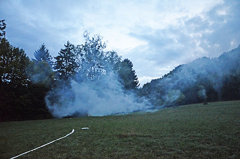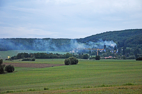 Bei der Anfahrt der Einsatzkräfte konnte bereits eine massive Rauchsäule aus dem Waldgebiet bei der Heiligenkreuzer Straße wahrgenommen werden.