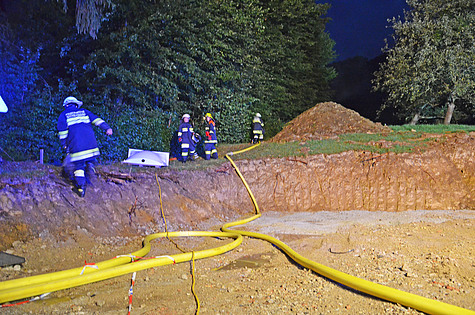 Um die Wasserversorgung und Atemschutzgeräteträger zu sichern, wurden die Freiwilligen Feuerwehren Sparbach und Heilligenkreuz nachalarmiert. Eine ca. 200 Meter lange Zubringleitung wurde verlegt sowie mehrere Lichtfluter aufgestellt, um die Einsatzstelle im unwegsamen Gelände ausleuchten zu können.
