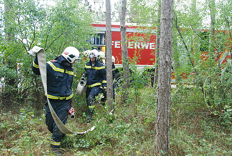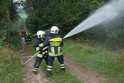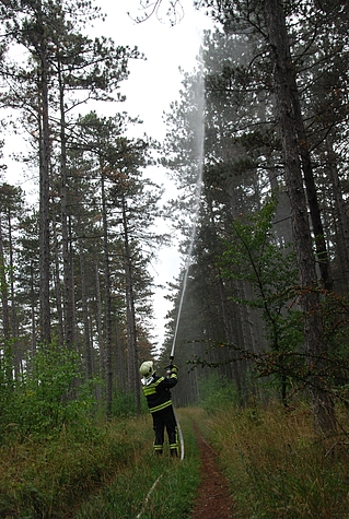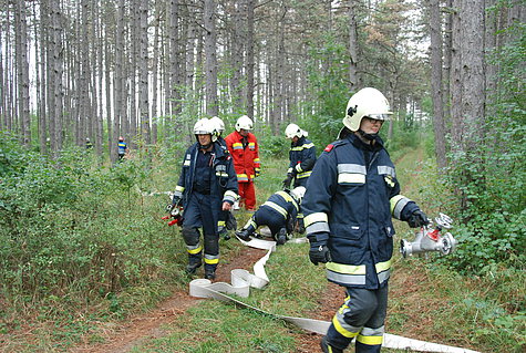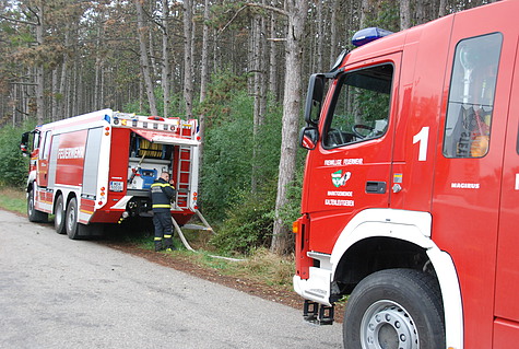 Die örtliche Feuerwehr Weikersdorf am Steinfelde (Bezirk Wiener Neustadt) steht seit mehreren Tagen bei einem Waldbrand im Einsatz. Durch einen Wipfelüberschlag stehen mehrere Hektar Wald entlang des Freiheitsweges in Vollbrand. Das GTLF Brunn am Gebirge wurde am Weg in Stellung gebracht. Von dort aus, wurde mittels einer Motorkettensäge der FF Kaltenleutgeben, eine Schneise geschnitten um eine Löschleitung in das betroffene Waldgebiet legen zu können. Über die TLF Gießhübl und Kaltenleutgeben wurde ein Pendelverkehr eingerichtet. Um den Waldbrand effizient bekämpfen zu können, wurde die Mannschaft in der sogennanten Riegelstellung positioniert. Hier wird nach jedem zweiten B-Schlauch ein Verteiler gesetzt und zwei C-Strahlrohre in Stellung gebracht. Dies hat den Vorteil, dass je eine Fläche von rund 30m mit Löschwasser in beide Himmelsrichtungen abgedeckt werden kann. Zusätzlich wurde noch die Tragkraftspritze Gumpoldskirchen eingebaut.