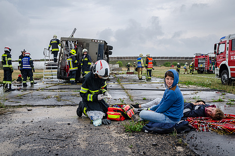 - Rettung zahlreicher verletzter Personen aus einem umgestürzten Autobus