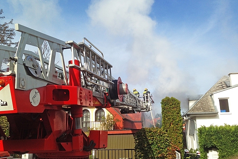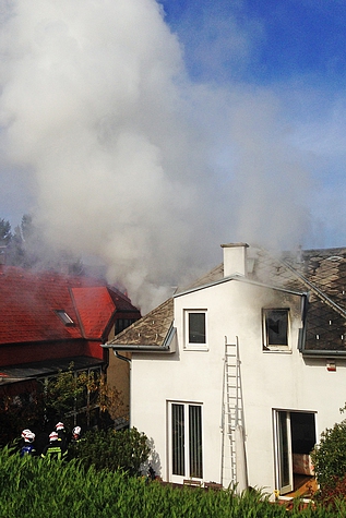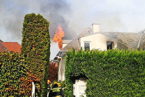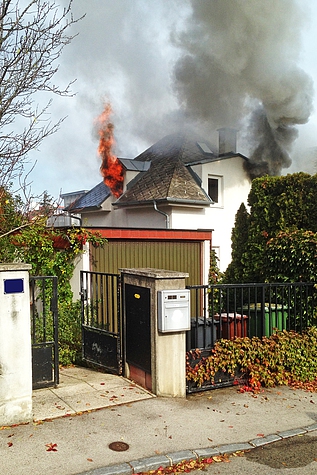 Sofort rannte sie aus ihrem Wohnhaus, brachte sich in Sicherheit und verständigte über den Notruf 122 die Feuerwehr. Die Bezirksalarmzentrale alarmierte die Freiwillige Feuerwehr Perchtoldsdorf zu einem Zimmerbrand. Die Einsatzkräfte rückten sofort aus. Bereits bei der Anfahrt waren der austretende Rauch und die meterhohen Flammen deutlich wahrzunehmen.