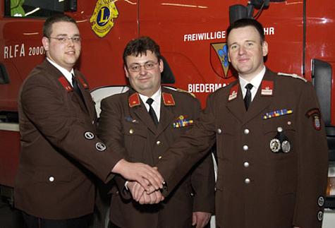 Nach dem "Super-Wahltag" 20. Jänner, an dem gleichzeitig bei den Feuerwehren Dornbach, Kaltenleutgeben, Laxenburg, Sparbach und Wiener Neudorf die Kommandoteams bis 2011 bestellt worden sind, stand die Feuerwehr Biedermannsdorf am 21. Jänner im Blickpunkt des Bezirkes - und dort gab es einen überraschenden Wechsel: Die Wahlberechtigten entschieden sich für den bisherigen Kommandant-Stellvertreter Karl Glasel als neuen Feuerwehrchef, ihm zur Seite stellten sie Werner Wlaschitz. Neuer Leiter des Verwaltungsdienstes ist Robert Wagner.