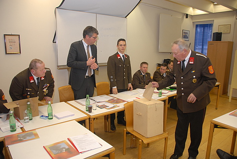Im Anschluss wurde mit der Wahl des Kommandanten begonnen. Von den 133 wahlberechtigten Mitgliedern der FF Perchtoldsdorf waren 125 Mitglieder bei der Wahl anwesend. Folgende Wahlvorschläge wurden eingebracht: