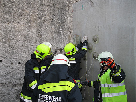 Nachdem der eingeteilte Übungsleiter BM Marco Kreuzer die ersten Erkundungen durchgeführt hatte, entschloss er sich zum Einsatz des Sondersprengverfahrens "Rette- und Bergesprengen". Nach zwei Sprengungen und anschließender mechanischer Nacharbeitung konnten die eingeschlossenen Personen gerettet werden.