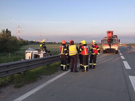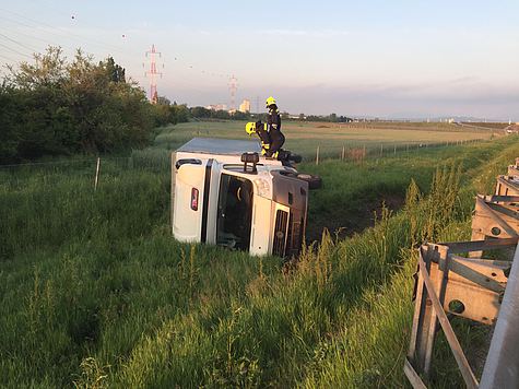 Umgestürzter Kleinlastwagen in Graben neben Südautobahn